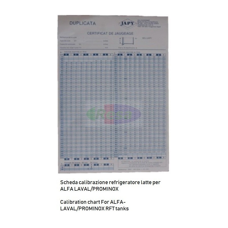 Scheda calibrazione refrigeratore latte per ALFA-LAVAL/PROMINOX